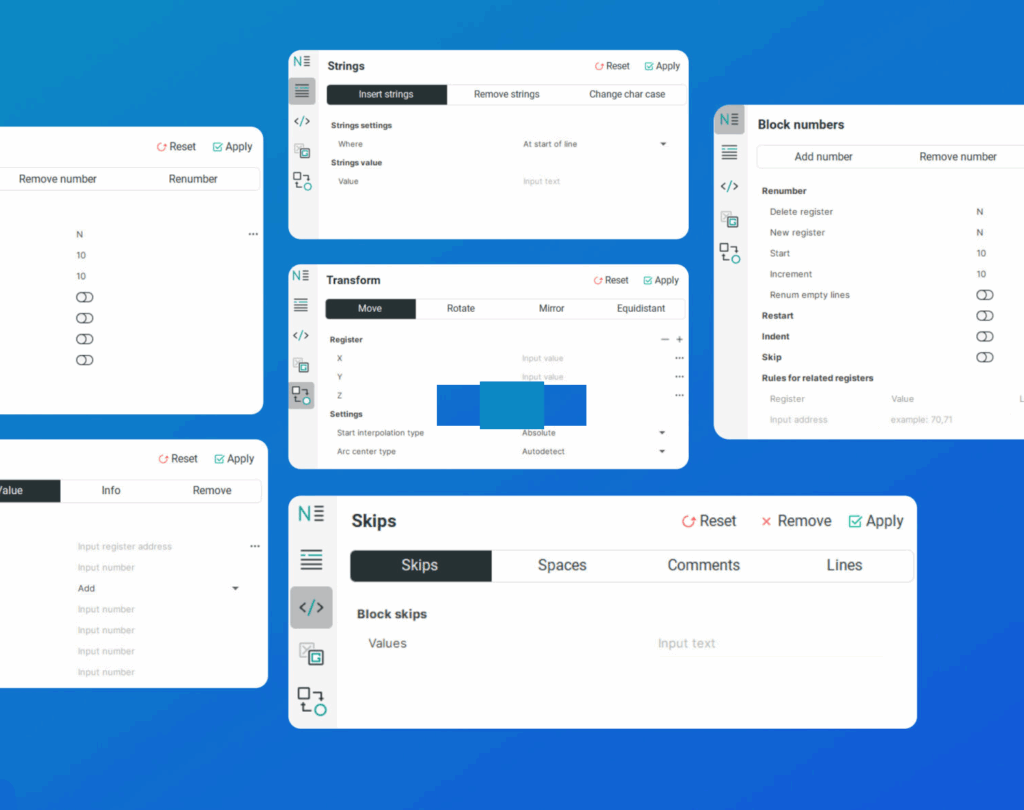 Een hoogwaardige tool voor directe NC-code bewerking met uitgebreide functies zoals nummering en hernummering, het invoegen of verwijderen van tekstreeksen en het wijzigen van hoofd- en kleine letters.
