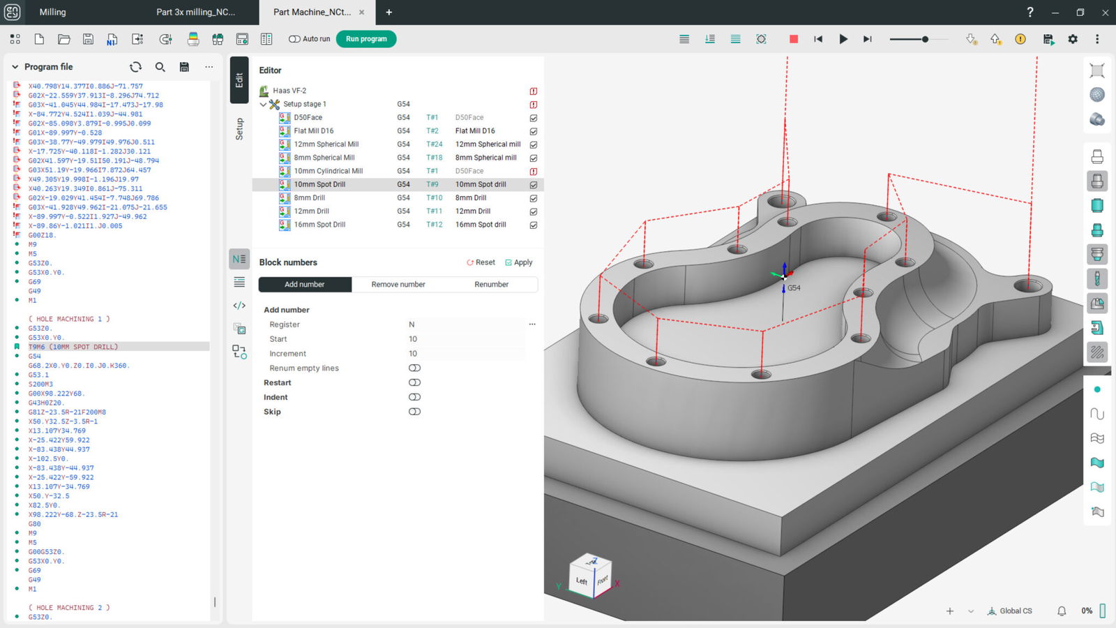 Met deze functie kunt u NC-code direct bekijken voordat u deze op een echte machine uitvoert. Bovendien kunt u de code rechtstreeks vanuit de voorbeeldweergave bewerken, wat uw workflow aanzienlijk versnelt en vereenvoudigt.